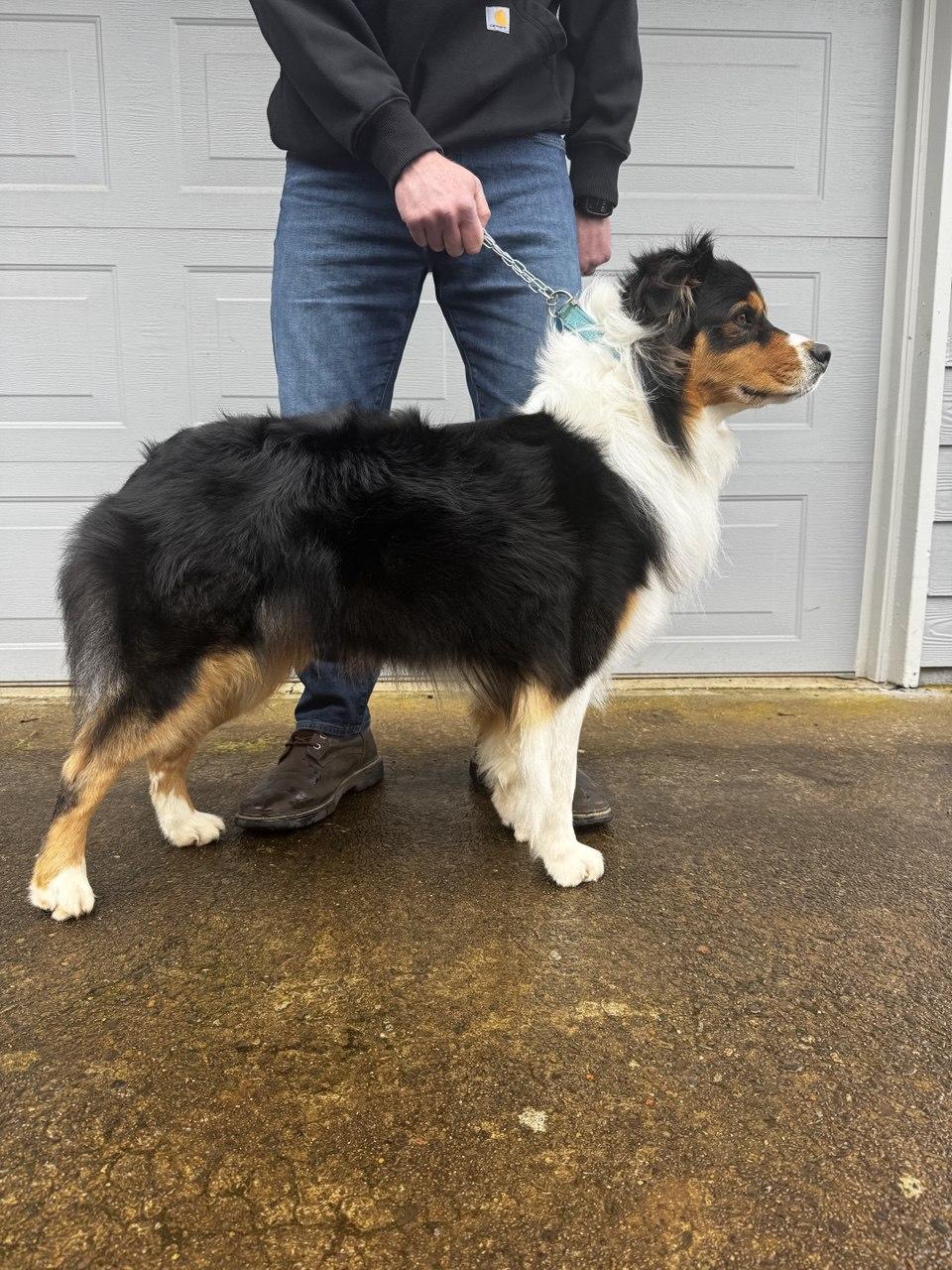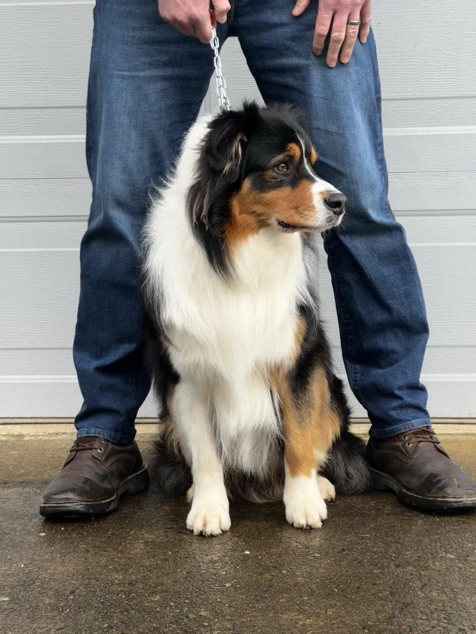 Dexter is our stunning Oregon Mist boy who truly embodies the classic Australian Shepherd temperament—highly intelligent, eager to please, and deeply devoted to his people. While he has a calm, steady presence at home, he truly comes alive when given a job to do.